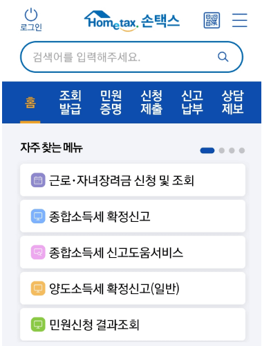 1) 국세청 홈택스 홈페이지에(www.hometax.go.kr) 접속합니다.