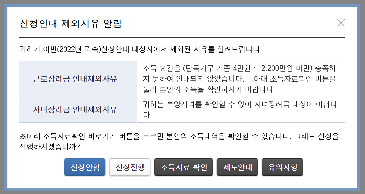 2) 근로자녀 장려금 신청 및 조회 버튼