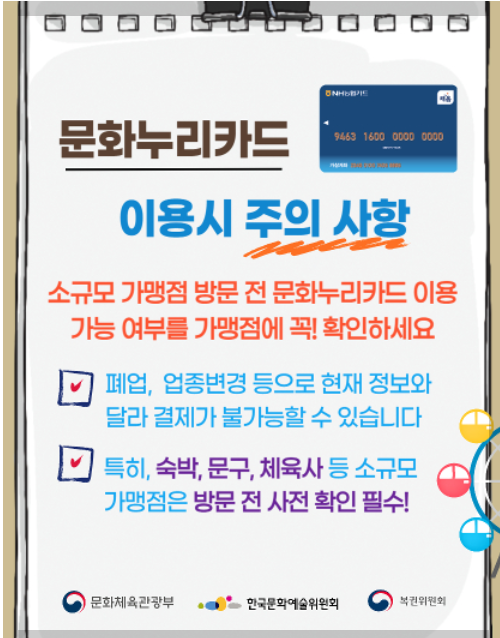 문화누리카드 이용 시 주의사항