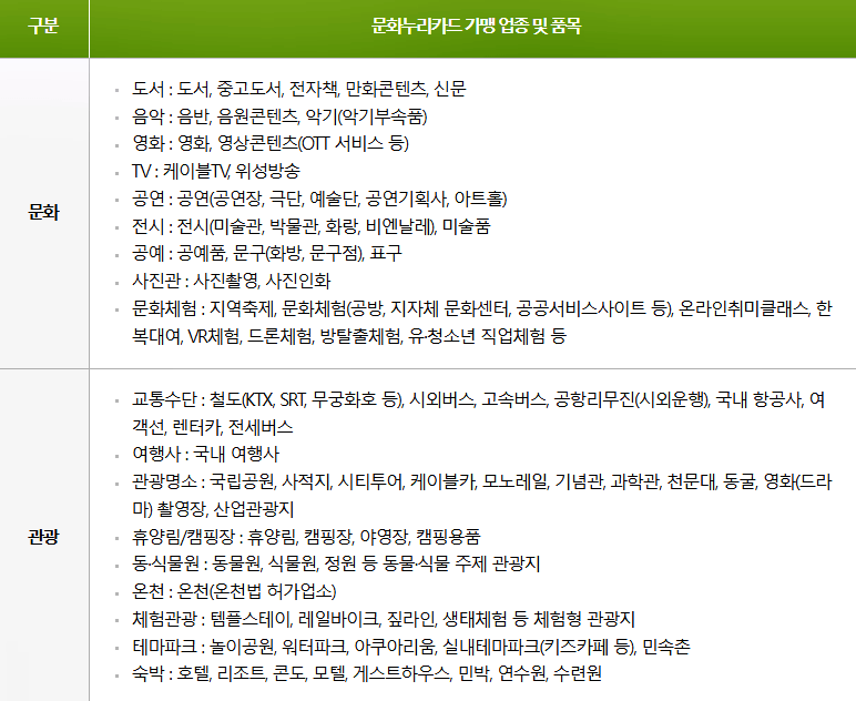 문화누리카드 오프라인 사용처