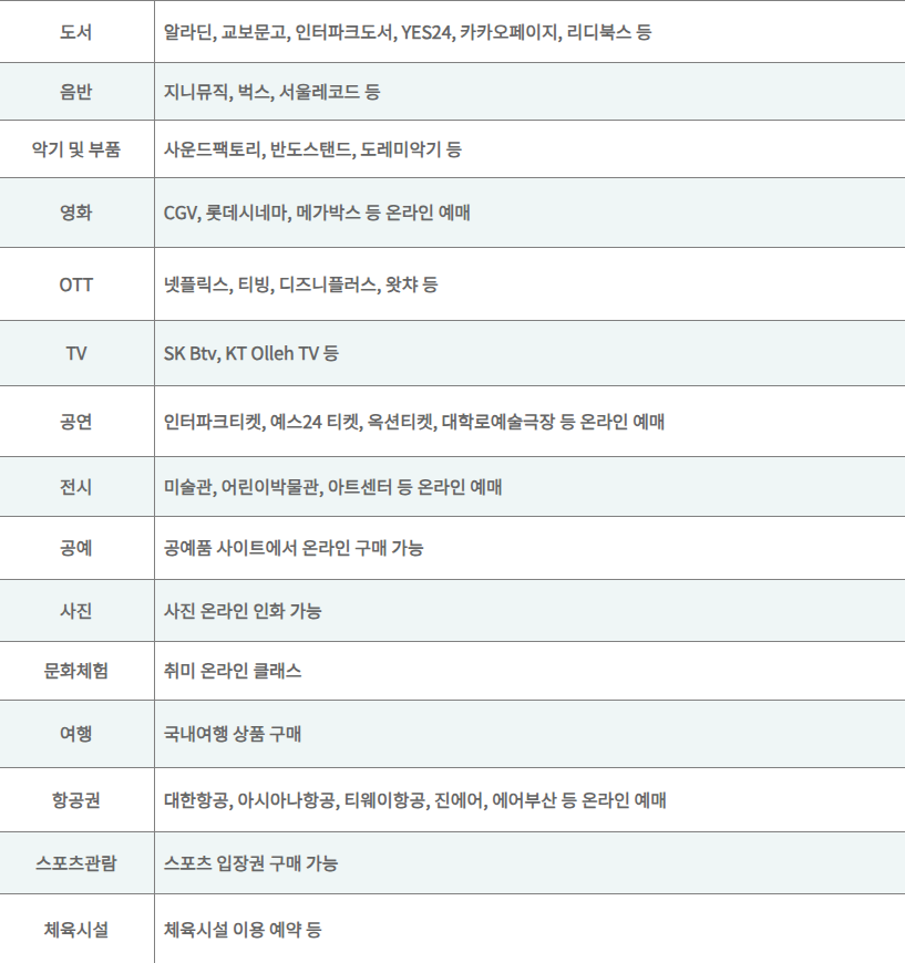 문화누리카드 온라인 사용처