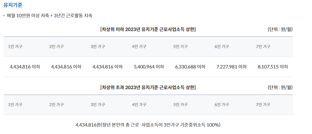 (소득 상한) 자산형성포털 > 사업안내 > 사업소개 > 희망·청년내일저축계좌 > 청년내일저축계좌 유지기준 확인